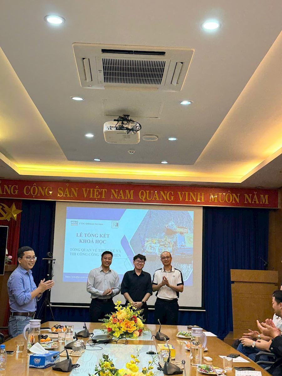 Khóa học ngắn hạn “Tổng quan về Thiết kế và thi công Công trình biển” tại cty POS-Vũng Tàu sau 90 ngày giảng dạy đã kết thúc. Học viên thể hiện tinh thần học tập nghiêm túc, tiếp thu tốt các kiến thức được truyền đạt. Để hiểu sâu lĩnh vực công trình biển, các học viên cần tiếp tục bổ trợ thêm kiến thức chuyên môn.