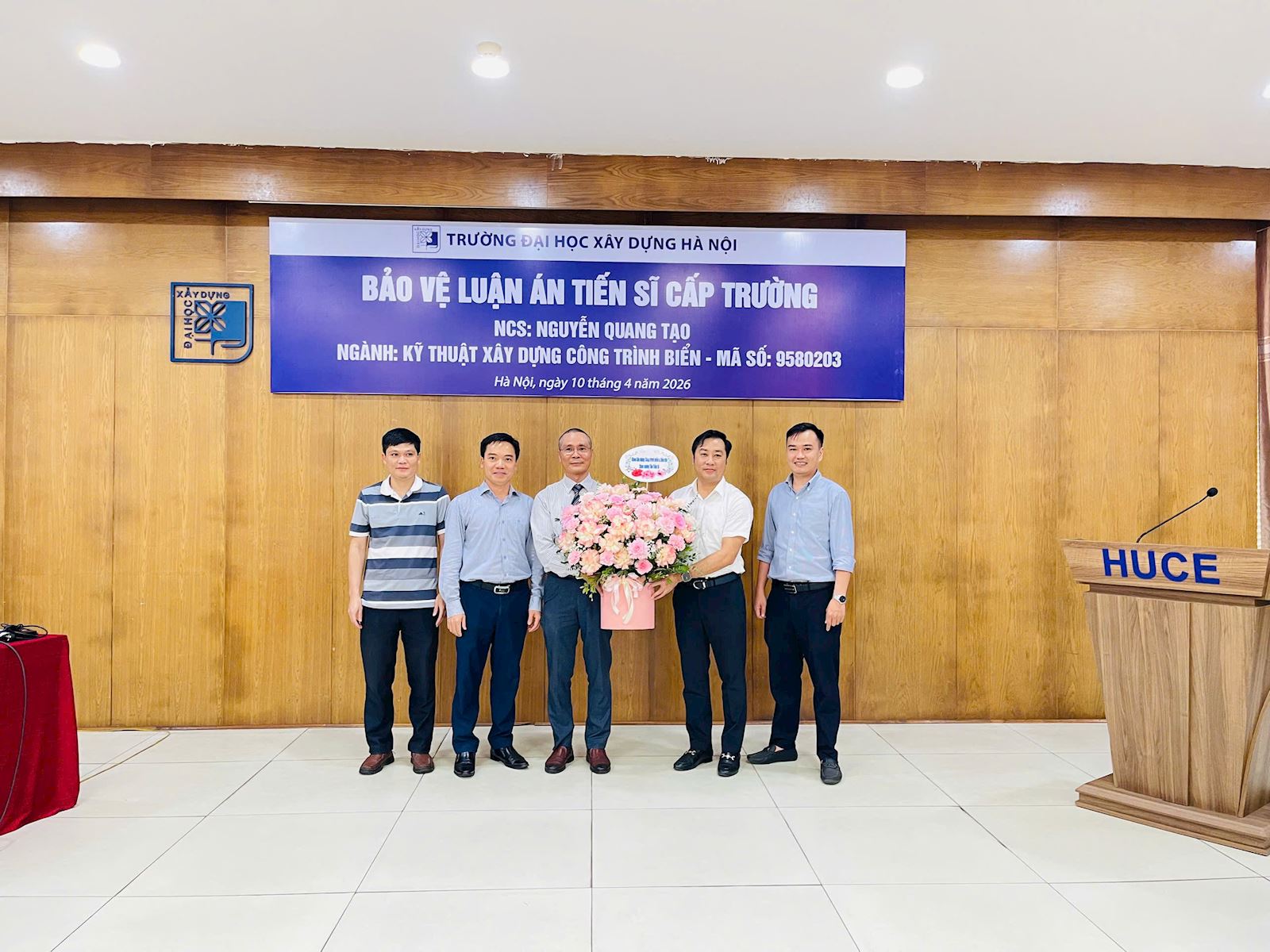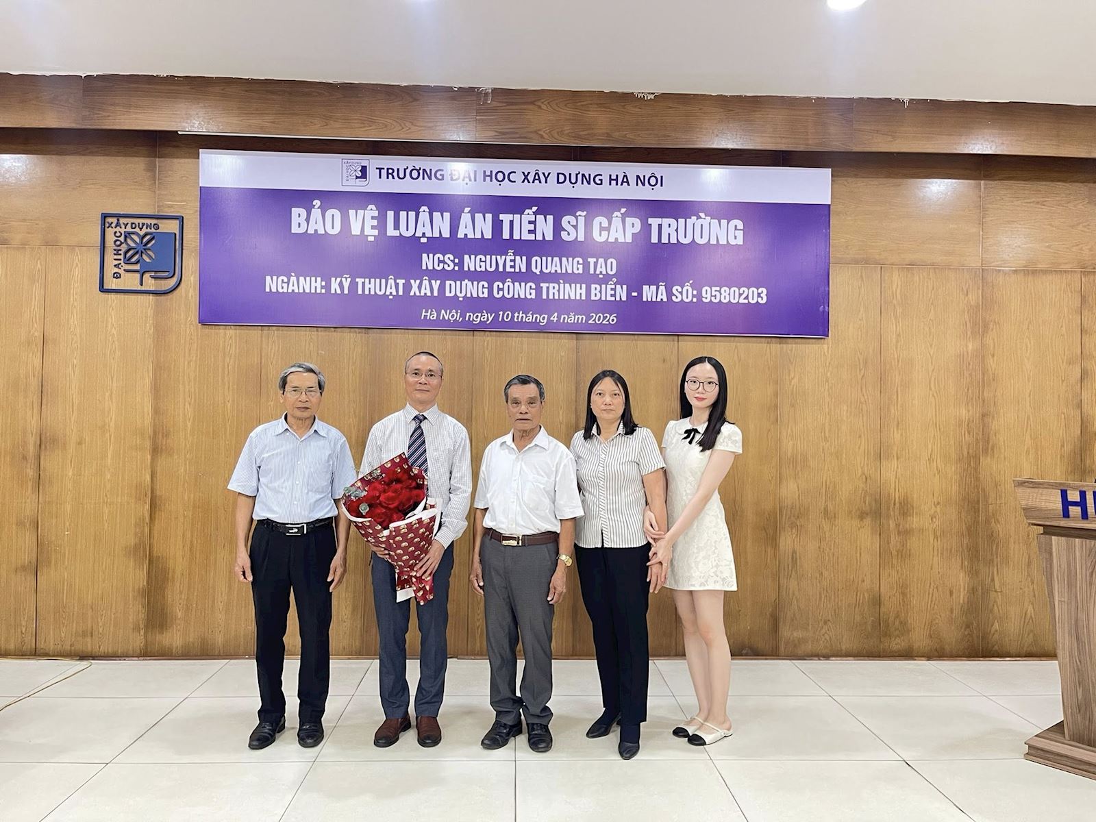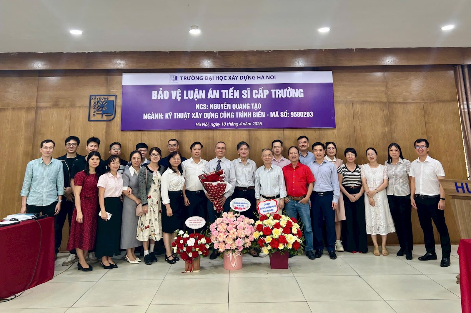Sáng nay, ngày 10 tháng 4 năm 2026, Nghiên cứu sinh Nguyễn Quang Tạo đã bảo vệ thành công luận án tiến sĩ cấp Trường tại Trường Đại học Xây dựng Hà Nội.